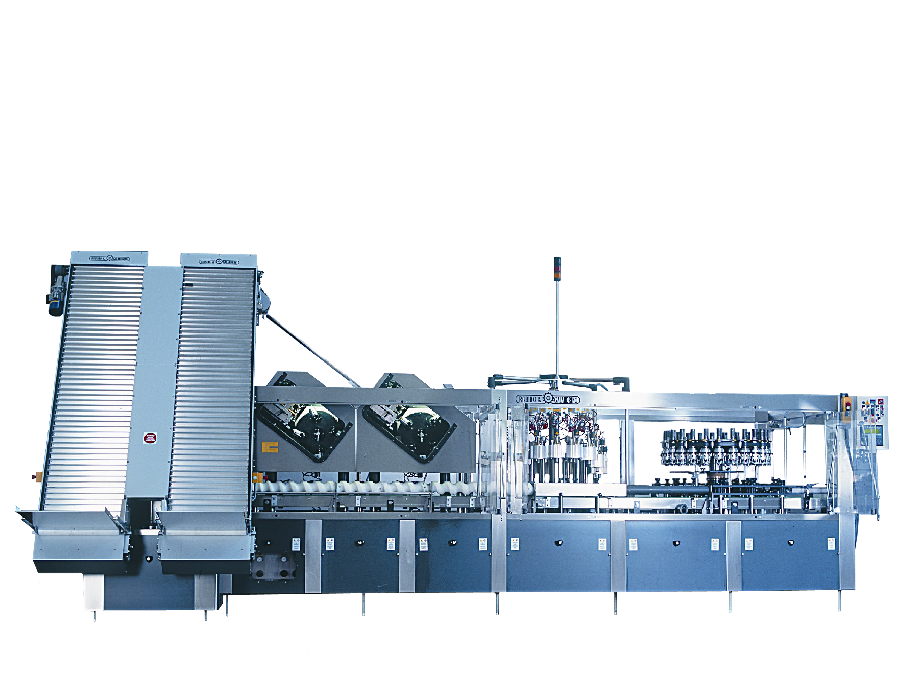 - Eine Maschine mit vielfachen drehenden Köpfe; eine Erfindung von Robino & Galandrino (internationales Patent). Steigerung der operativen Leistung bis zu 1500 Fl. /h jedes Kopfes. Die Ausstattung der Grundmaschine (für den Linieneinsatz fertig) ist: Kapselaufsetzer, Zentriergerät für Flaschenhals, "Kontrollgerät" Kapselmagazin (Fassungsvermögen: ca 2000 Kapseln), Karussell mit Schrumpfköpfen und/oder Karussell für pneumatische Vorplisserung , Karussell mit Anrollköpfen, Unfallschutzvorrichtungen, Ausstattung für eine bestimmte Flaschen- und eine Kapselsorte.